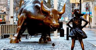 A bronze statue of a four foot girl was placed in front of the 7,000 pound “Charging Bull” statue outside of Wall Street.